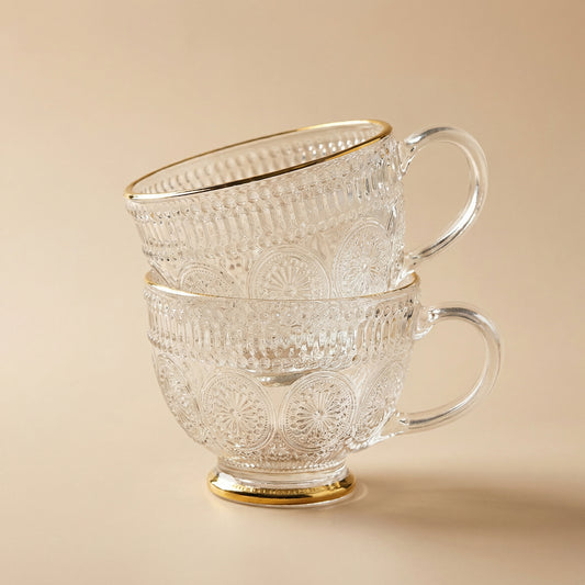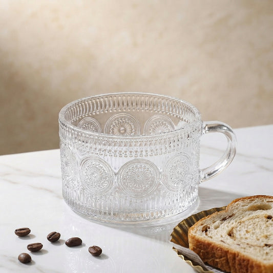 Embossed Glass Mug with Handle